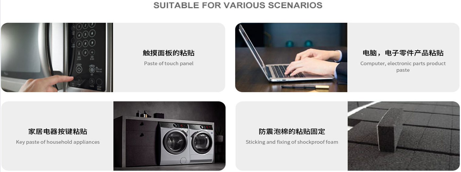 長期耐高(gāo)溫性好,粘附力強,模切性能優越,便於(yú)切割,無紙屑粉塵