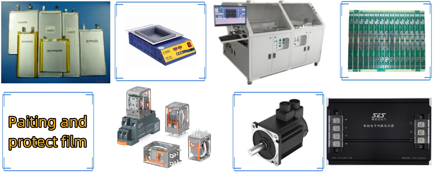 在線路板製造行業中可用於電子保護粘貼,特別適用於SMT耐(nài)溫保護、電子開關、PCB板金手指保護、電子變壓器、繼電器等各種需耐高溫及防潮保護的電子元器件。